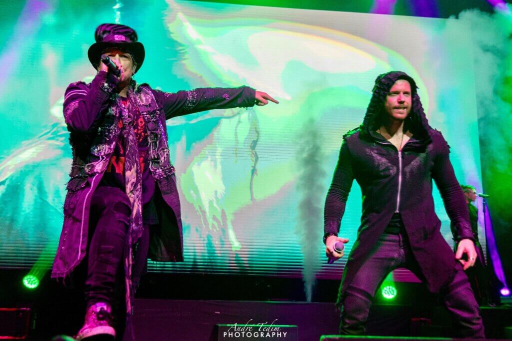 Perguntando se os fãs gostariam de ouvir algo das antigas, é hora de fazer todo mundo pular ao som da faixa que dá título ao projeto. “Avantasia” é executada em clima bem descontraído, com Tommy duetando com Tobias, Andrew e Anthony trocando de lado no palco e a plateia a plenos pulmões se mesclando aos backing vocals durante o refrão. Tobias avista Kevin Nixon, o fotógrafo que faz parte do crew, na área do pit, troca algumas palavras e o apresenta ao público – “ele gosta de receber atenção, assim como eu”, brinca o cantor. Questiona então se os fãs ainda estavam acordados e acesos, pois a próxima faixa demandaria bastante energia: “Let the Storm Descend Upon You”, única de ‘Ghostlights’ (2016) a entrar para o set, conta com participação de Herbie e Ronnie, com suas vozes rasgadas complementando perfeitamente a voz limpa de Tobias. De fato, é uma maratona de 12 minutos agitando, gritando, batendo palmas e balançando cabeças, mas ninguém reclama, muito pelo contrário. Ambas as faixas seguintes trazem riffs e atmosfera mais pesados, e Tobias entrega toda sua atuação teatral em “The Toy Master”, onde usa uma bengala muito parecida com as de Alice Cooper (que a gravou); já “Twisted Mind” um convite a adentrar a pequena, disfuncional e engraçada mente dele, em suas próprias palavras, fica por conta de Ronnie e Tommy (ótima escolha, já que a original conta com Roy Khan, também do KAMELOT).