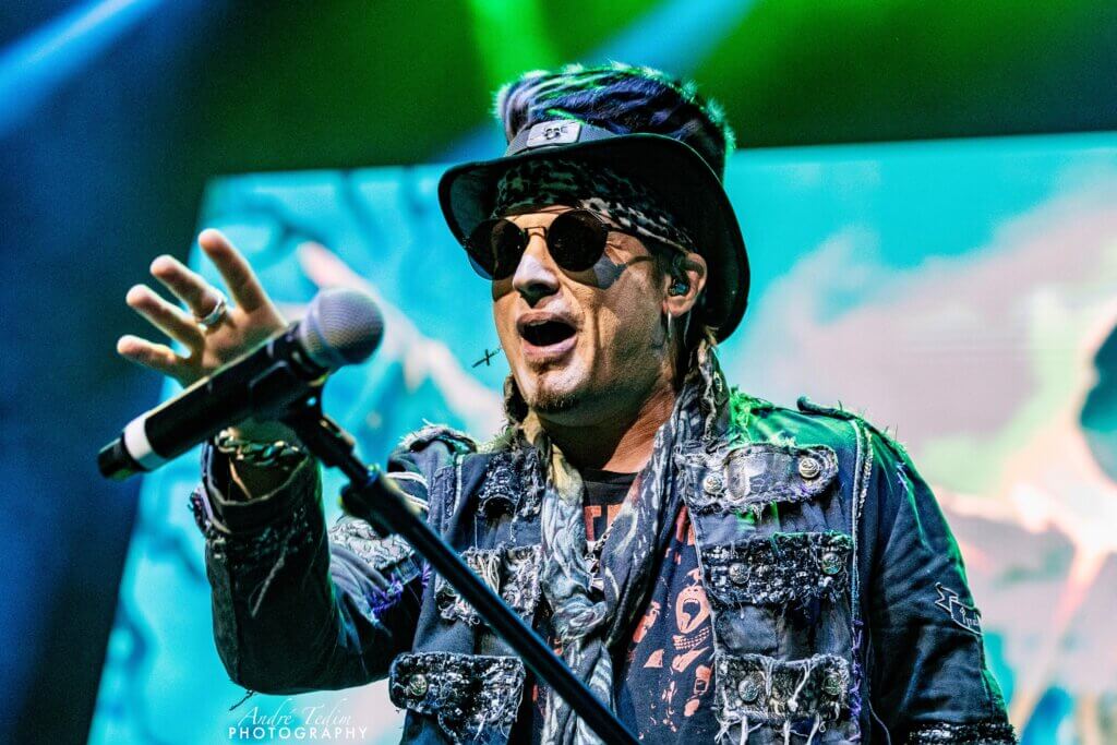 Retornando a um álbum “até que decente”, diz ele, se referindo a ‘The Scarecrow’, de 2008, vem “Devil in the Belfry”, na qual Herbie vem à frente para fazer as partes consagradas na voz de Jorn Lande (MASTERPLAN). A plateia vibra junto às batidas bem marcadas da bateria de Felix; Tobias corre e dança pelo palco e enaltece Miro durante seu solo seguido de dobradinha com a guitarra. Enquanto Herbie volta para sua posição, Tobias anuncia mais uma música do álbum mais recente, e diz que sabe bem como muita gente tem resistência a ouvir os trabalhos atuais de uma banda num show, mas salienta que eles colocaram muito sangue, suor e seus corações nas novas composições. Assim sendo, “Phantasmagoria” traz o segundo convidado da festa, Ronnie Atkins (PRETTY MAIDS), com voz e energia invejáveis para quem tem 61 anos e passou por um severo câncer de pulmão. A faixa é uma das melhores do álbum e empolga bastante. Enquanto Ronnie sai de cena, Tobias bebe um gole d’água trazido por um técnico de palco, e aproveita as trocas de equipamentos para contar sobre o que inspirou a próxima faixa, “Against the Wind”: os ‘arrombad0s (assholes)’ que, a cada álbum, aparecem para criticar, muitas vezes sem mesmo ter ouvido, e sobre como é necessário continuar remando contra a maré e seguindo aquilo em que se acredita. Então mais uma participação especial chega com tudo: Kenny Lackremo (H.E.A.T.) entra na segunda estrofe com seus esvoaçantes longos cabelos loiros e alcance vocal incrível, sendo aclamado ao final da canção e agradecendo com um sonoro “Obrigado!”.