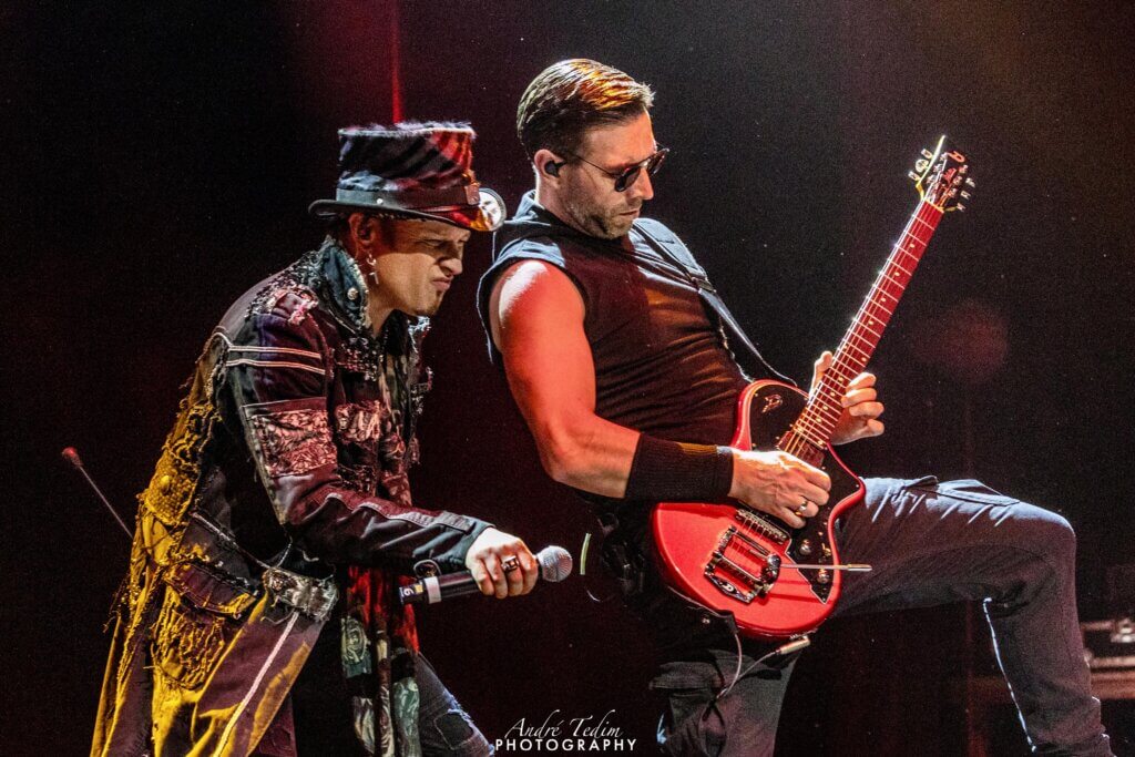 Alguns probleminhas técnicos com a guitarra de Sascha e o baixo precisam ser resolvidos antes do início de mais uma verdadeira sinfonia: “The Wicked Symphony”, e aqui, apesar de Tobias ser o protagonista da trama, ele continua em seu ‘repouso’ e deixa Tommy responsável por interpretar tanto seu papel como o de Jorn (o que não ficou tão legal, talvez tivesse feito mais sentido chamar Ronnie), enquanto Kenny assume a bronca de interpretar o personagem gravado por Russel Allen (SYMPHONY X). Os dois cantores performam um “duelo” de gritos na parte dos devaneios do protagonista, mas na vida real não há rivalidade alguma – ambos saem abraçados ao final da música. Ainda sem Tobias, o repertório segue com “Shelter from the Rain”, anunciada por Herbie – que conversa brevemente com a plateia corroborando que é sempre um prazer tocar no Brasil – e Kenny, onde o primeiro reveza entre os papeis de Bob Catley (MAGNUM) e Tobias, mostrando muita versatilidade na voz, e o segundo, Catley/Kiske. Kenny domina bastante o palco, ora ao centro, ora ao fundo junto às backing vocals, sempre pulando e elevando seus agudos até a estratosfera… causa ainda um frisson na plateia quando tira sua jaqueta de couro vermelha e exibe mais de sua boa forma física. Com Tobias retornando, agora quem descansa é Felix, pois é hora de balada; antes do início do hino “Farewell”, o anfitrião tira um minuto ainda para pedir a Nixon para bater uma foto da ‘família’ e elogiar tanto seus convidados quanto os fãs no quesito cantoria. Chiara finalmente vem ao centro do palco para brilhar sob os holofotes e reger as mãos da plateia de um lado a outro enquanto acompanham a melodia principal com “ô-ô-ôs”. Foi feito um arranjo levemente diferente da versão estúdio, onde Andrew faz um solo com sua assinatura pessoal, Miro adiciona notas entre suas linhas de teclado e o dueto a capella no final também é prolongado. Encaminhando o show para o término, vem mais uma favorita da audiência, e, como bem observado por Tobias, uma música que carrega consigo todos os elementos que representam o Avantasia: “Scarecrow”. Com mais de dez minutos, ela navega por melodias suaves e contagiantes, solos de guitarra com muito feeling, riffs pesados e rápidos, corais épicos e o diálogo entre os personagens. Aqui, Ronnie entrega tudo de si e ainda comanda a ‘ola’ fazendo a galera gritar “hey” no ritmo dos compassos. Um excelente encerramento… de bloco.