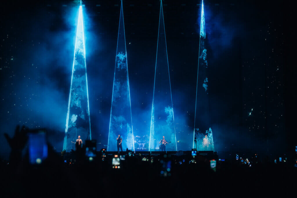 Era uma noite bastante abafada no Allianz Parque, e após os esquenta do Mr. Bungle e do A Day to Remember, com pouquíssimos minutos de atraso, as luzes do palco se apagaram, e ressalto aqui do palco porque poucos minutos antes do show se iniciar, um aviso foi dado nos telões para as pessoas escanearem um QR Code que estava aparecendo, para acompanhar as luzes do show. Tratava-se de um efeito em que as lanternas dos aparelhos acendiam em roxo e amarelo, compondo parte do show e dando um efeito visual incrível naquela noite!