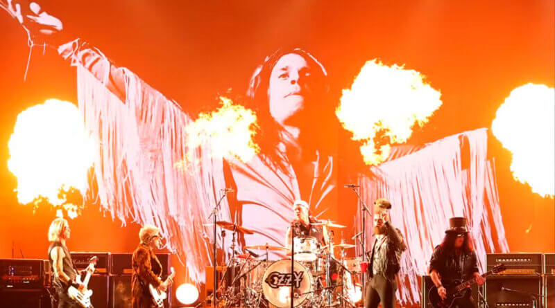 Um dos momentos mais aguardados da noite pelos fãs do metal foi o tributo a Ozzy Osbourne. Slash e Duff McKagan do Guns N’ Roses se juntaram a Chad Smith do Red Hot Chili Peppers e o produtor e guitarrista Andrew Watt, além do cantor Post Malone, para executarem uma versão de “War Pigs” e relembrando os nomes da música que se foram em 2025, ano que perdemos o Madman. Entre os homenageados também estava o nome de Ace Frehley do Kiss e na plateia, Sharon, Kelly e Jack Osbourne presenciaram a homenagem.