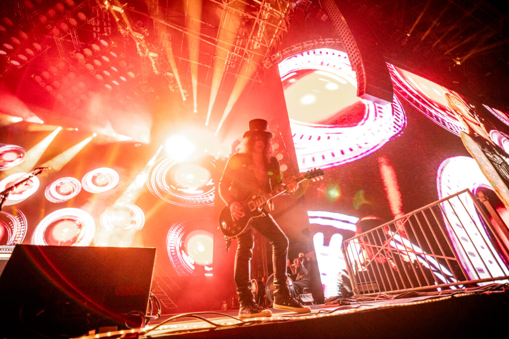 Após um dia todo de atrações que viariaram entre nomes consagrados e outros representantes mais novos do rock, pontualmente as 20:30, as luzes se apagaram e um som em crescendo surgiu do equipamento de som e os telões mostraram uma esfera girando sem controle, que logo parou e entre luzes vermelhas, os primeiros acordes de “Welcome to the Jungle” foram executados pela dupla Slash e Richard Fortus.