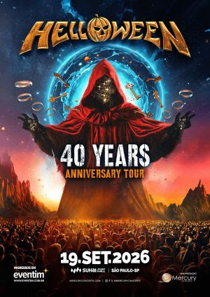Celebrando quatro décadas de trajetória, o Helloween volta aos palcos com sua turnê mais ambiciosa. As primeiras datas na Europa esgotaram imediatamente. Reunindo seus três vocalistas icônicos — Michael Kiske, Andi Deris e Kai Hansen — o grupo apresenta performances explosivas em um espetáculo que revisita seu legado e aponta para o futuro. A turnê chega ao Brasil embalada também pelo recém-lançado CD e Blu-ray “Live at Budokan”, registro do show realizado em Tóquio, considerado um novo marco na história ao vivo da banda