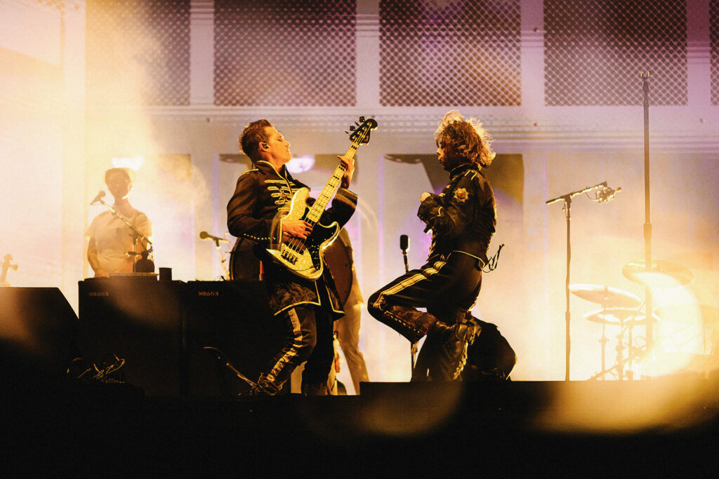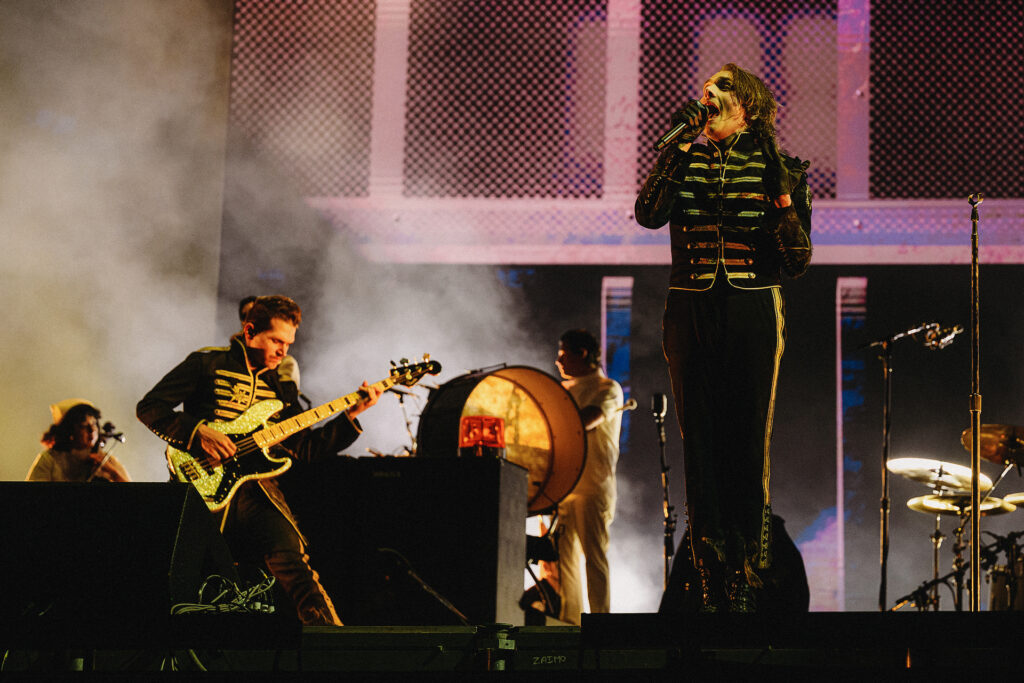 Os Hives não deixaram de explorar o repertório mais antigo. A segunda faixa foi “Walk Idiot Walk”, do disco “Tyrannosaurus Hives” (2004), em que Peele, com sua energia e ânimo altos, pediu palmas da galera, agradeceu aos paulistas em língua portuguesa, cantou mais à frente do palco, em uma mini plataforma, e desceu para a grade da pista premium pela primeira vez na noite. Tudo enquanto seus parceiros de banda, de longa data, traziam uma instrumentalidade absurda e alegre. Foi um combo suficiente para que o público fizesse barulho no final da música e aumentasse essa aclamação com os pedidos dos guitarristas, que “provocavam” ao gesticular que não os ouviam.