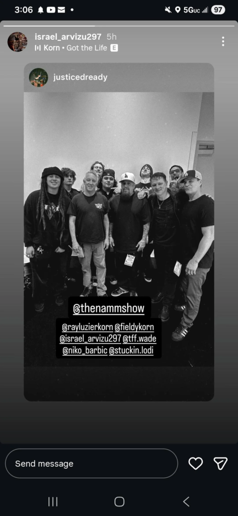 A recente foto de Fieldy com Luzier foi tirada no mês passado, durante a NAMM, feira tradicional de música que acontece em Anaheim, Califórnia. Aparentemente, entre foi o primeiro encontro de Fieldy com um membro do Korn desde a sua saída.
