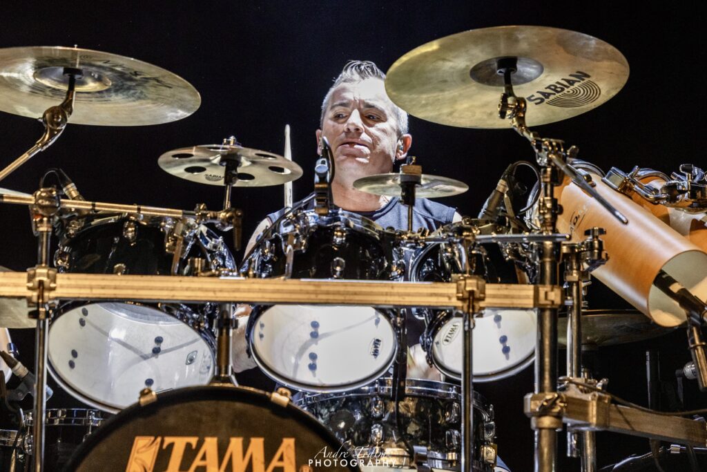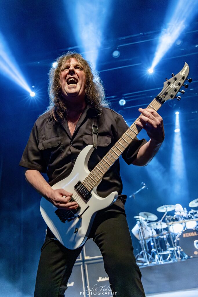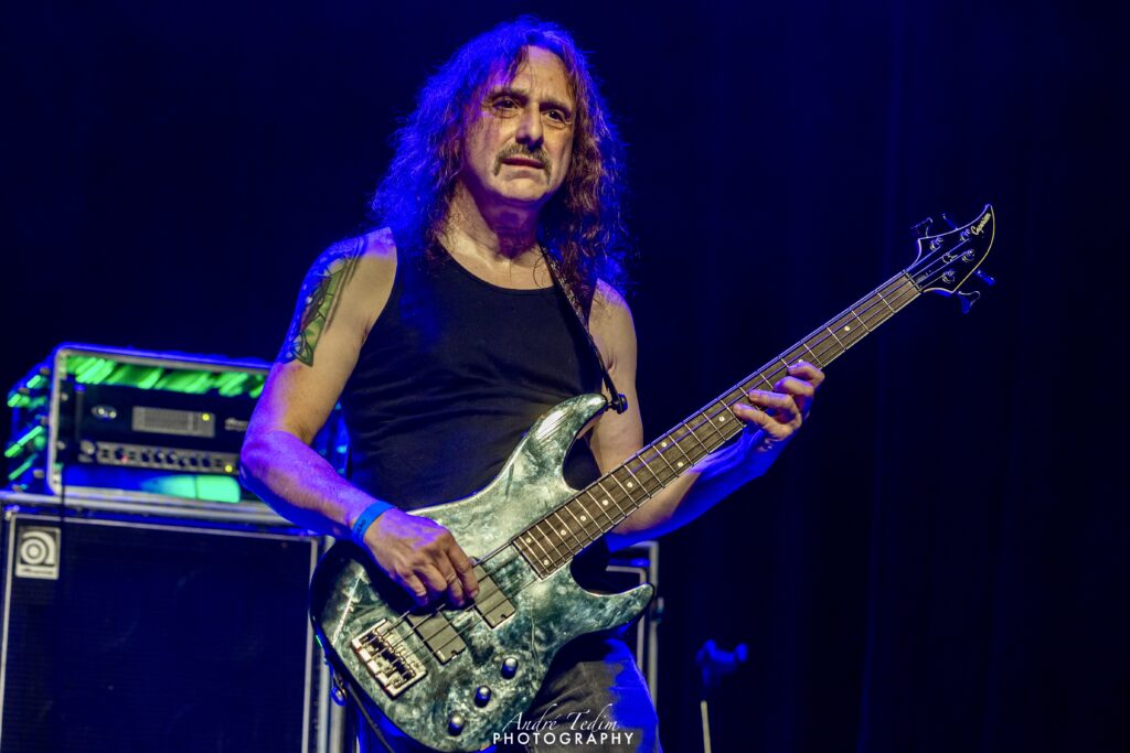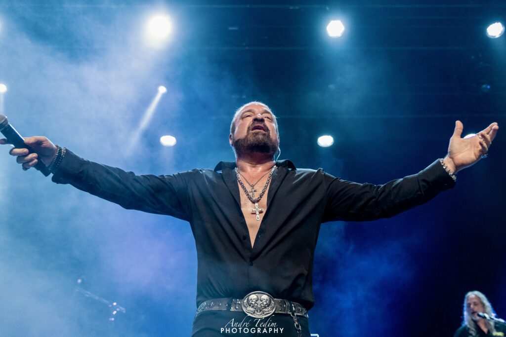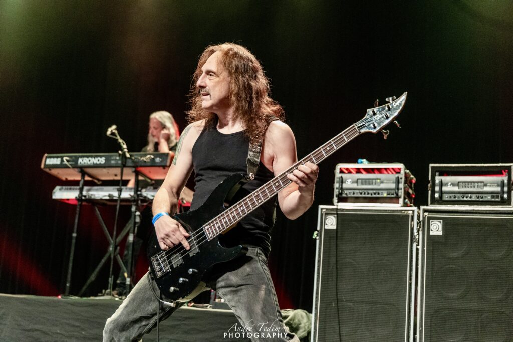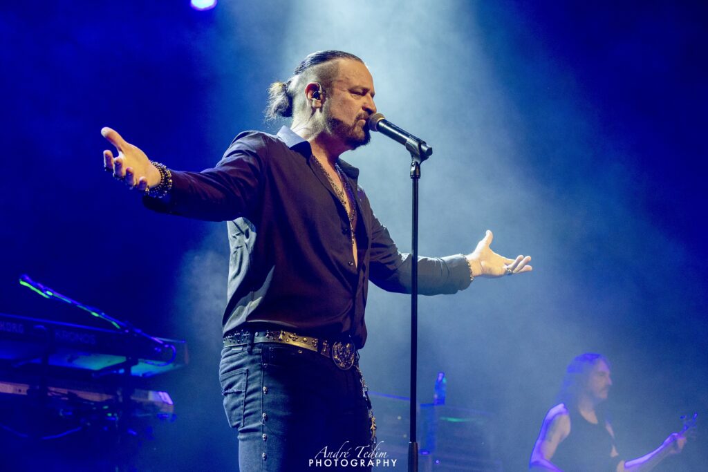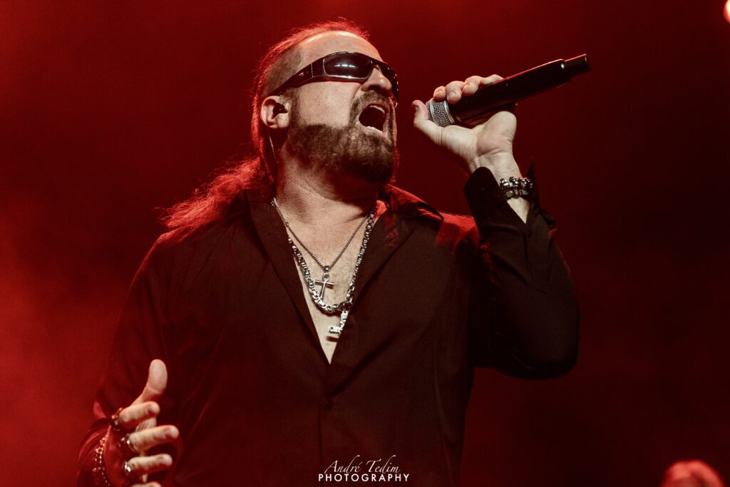 Cortando o assunto para introduzir os “cavalheiros com quem tem o prazer de dividir o palco”, chama primeiro LePond, que se curva perante a plateia e o cumprimenta com um soquinho; Pinella,“o mago de WoW”, que ganha da pateia até um coro chamando seu nome; depois,“o responsável por pilotar o barco pirata, o imparável” Rullo, e por fim, mas não menos importante, Romeo, a quem enaltece não só como guitarrista, mas como ser humano e compositor. O guitarrista distribui sorrisos e coraçõezinhos para os fãs, que gritam seu nome, mas, tímido que é, logo devolve os holofotes para o cantor. Russel enfatiza ainda que, mais do que uma celebração do passado, esse é um momento de olhar para o futuro da banda, e reforça a promessa de lançar ainda esse ano o super aguardado álbum que vem sendo lapidado por uma década – processo atrapalhado pela pandemia global de COVID, que quase faliu muitos artistas e os forçou a emendarem turnês quase anuais para se restabelecerem financeiramente. Encerrando o discurso com um gancho perfeito para o bis, ele diz que o Symphony X não seria nada “Without You” (sem vocês) e aí é hora de ver marmanjo chorar, com uma das melhores power ballads do metal progressivo. Os fãs não só cantam junto como acompanham com palmas durante o interlúdio.