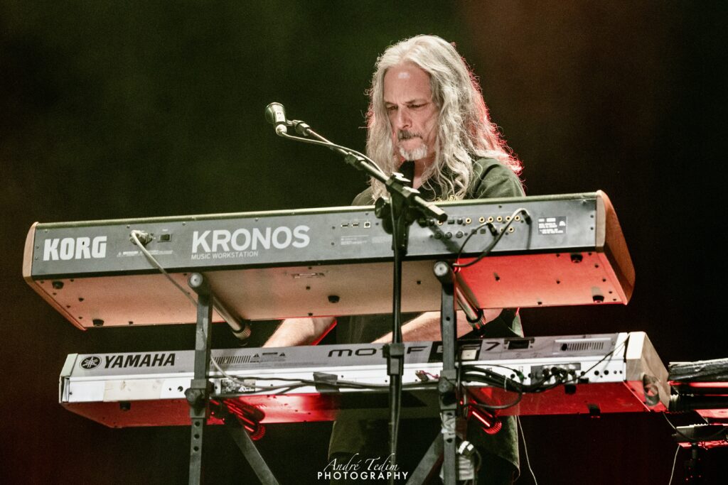 A apresentação começou um pouco adiantada em relação ao horário previamente anunciado, então a plateia ainda não se encontrava totalmente preenchida, mas o carisma do músico contagiou a todos os presentes. Para tocar as músicas de seu álbum ‘The Eyes of the Moon Pt. 1’, de 2020, não podem faltar dobradinhas de tappings com Elizzy e seu baixo de 5 cordas; além de musicista, ela também é formada em física, então, complexidade não é um problema. Chucho não fica devendo e comanda as baquetas com tanta ferocidade que um de seus pratos quase tomba em determinado momento.